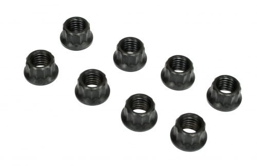 12 Point 8mm Engine Nuts, Black, 8 pcs, 8mm-1.25 Thread, uses 10mm 12 Point Socket