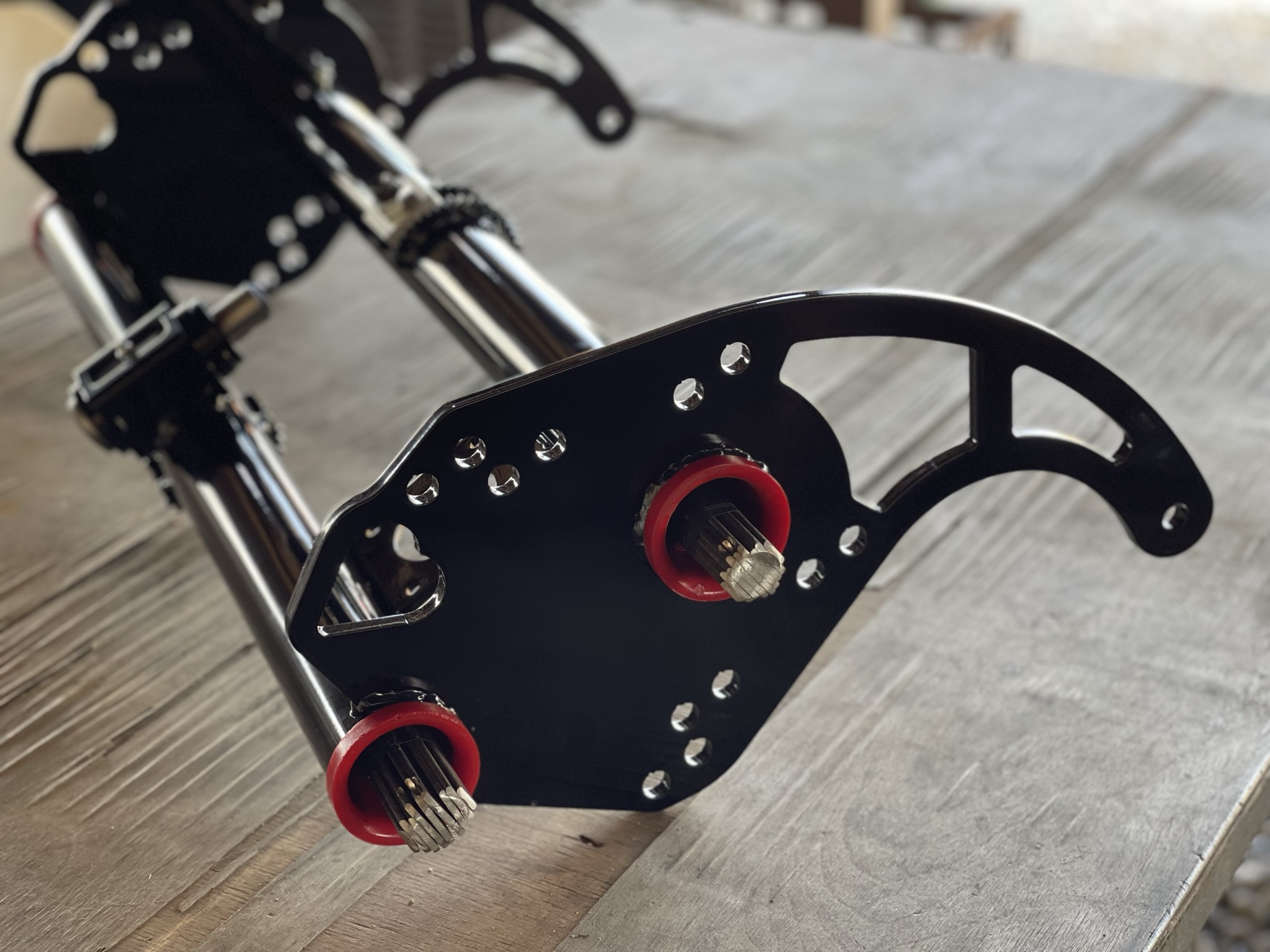 •Spindles are also tig welded and fabricated at a 10mm/(1cm) offset with a 2.5″/(6.35cm) drop for maximum strength and durability.
