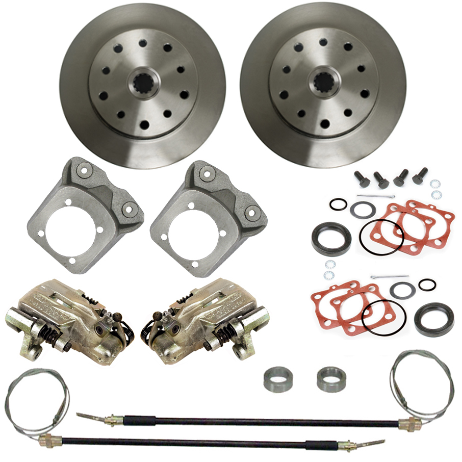 Deluxe Rear Disc Brake Kit With Emergency Brakes. Great For Street, Off-road And Play Cars Where Emergency Brake Provisions Are Required. Original Equipment Style Brake Calipers Make Poor Break Performance A Thing Of The Past. Converting Your Vw I.R.S. Vehicle From Drum To Disc Brakes Is Made Simple With This Conversion Kit.