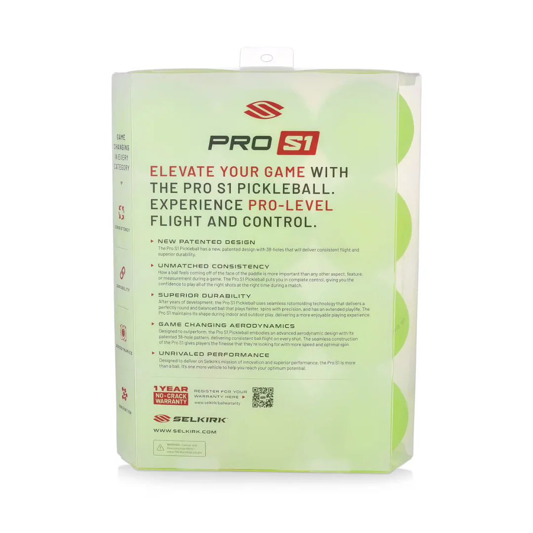 The Pro S1 Ball features a new, patented design, developed to create a ball with consistent flight, consistent bounce, and superior durability. Guaranteed with a 1-Year No-Crack Warranty.