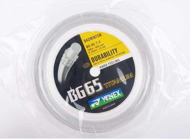 BG65Ti is designed to deliver more power and less shock. High-quality titanium gives it high-power repulsion and excellent shock-damping performance. It is the ideal string for high-tension stringing and aggressive tournament play. The 200 meter reel will string 20 to 23 rackets depending on usage. Each racket requires approximately 10 meter of string.
